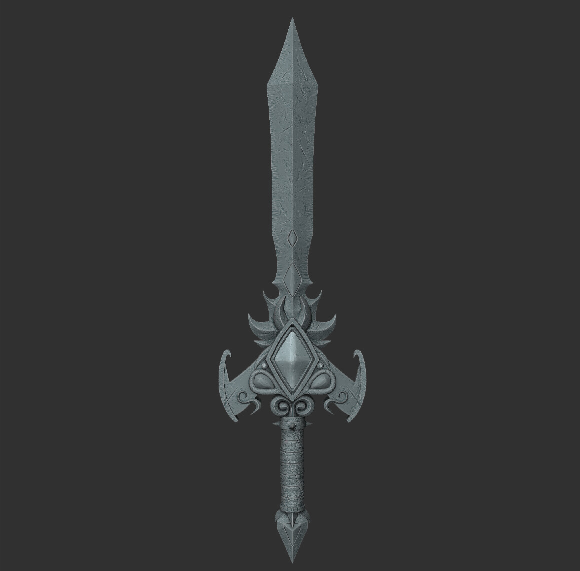 At that time, I had already been working for a long time at another company, creating ship and environment models for mobile games. Out of curiosity, I decided to try making a similar shield. However, the model remained at the high-poly stage and was not completed due to frequent periods of intense work and almost no free time. I also planned to create a weapon set in the same style—there is another screenshot of a sword. It was supposed to be an ice-themed weapon set in the style of TESO.